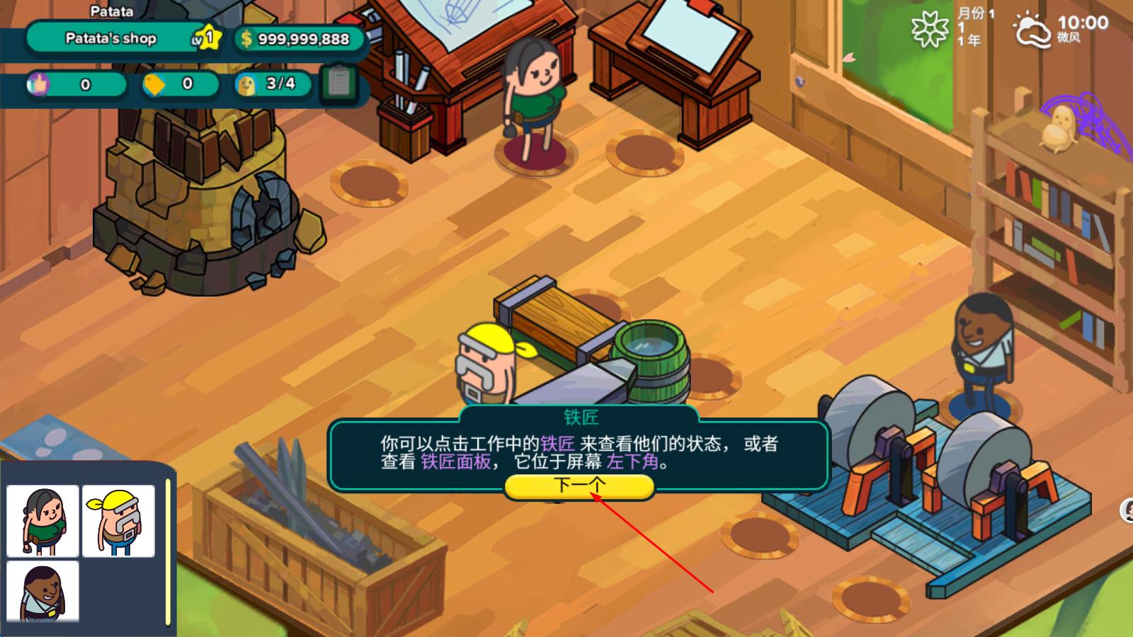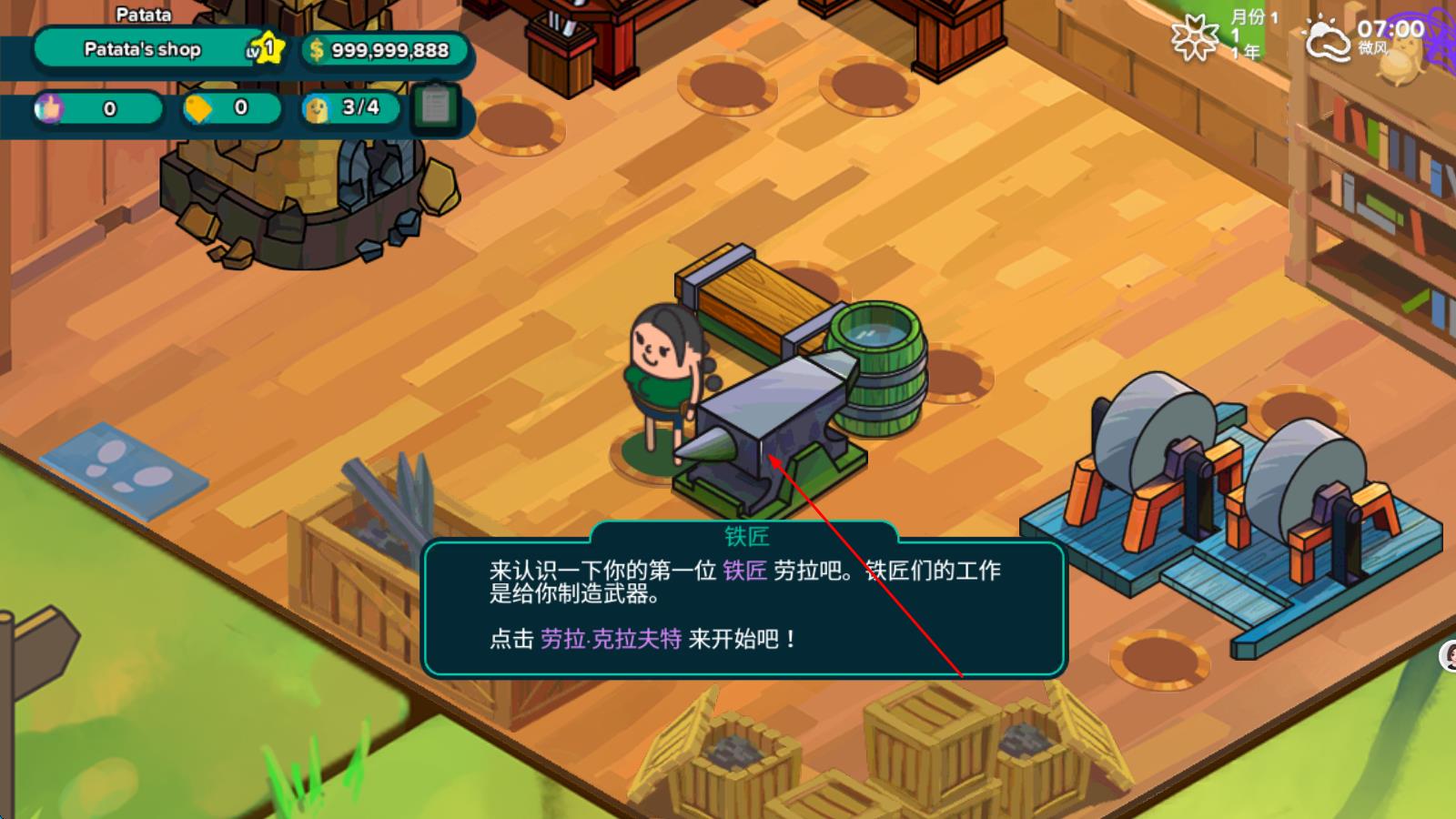 1、初入游戲,你作為土豆世界的武器店老板,繼承祖上傳下的店鋪,從招募寥寥數(shù)位鐵匠起步,開啟打造武器的征程。