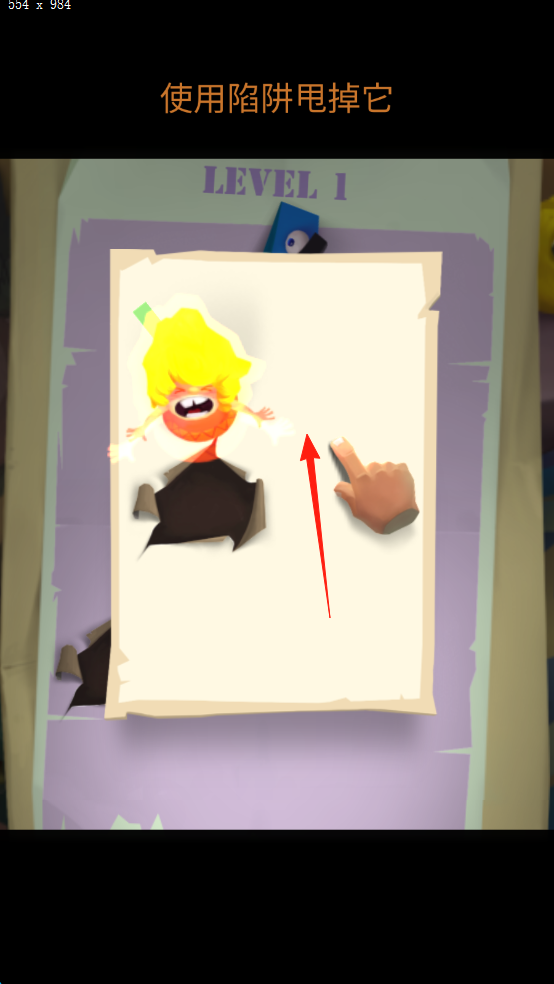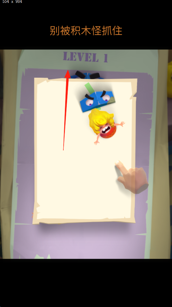 1、按住屏幕,移動(dòng)角色,在紙張場景,躲避積木怪,嘗試逃離路徑。