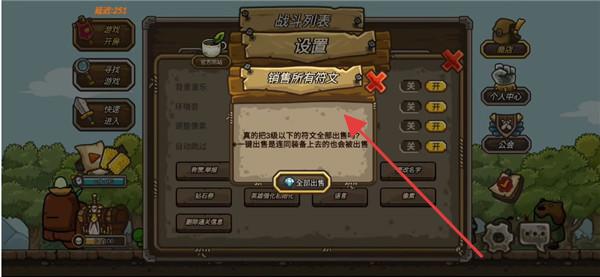 2、游戲設置界面,彈出“銷售所有符文”提示,可選擇鉆石出售符文,涉及符文管理玩法。