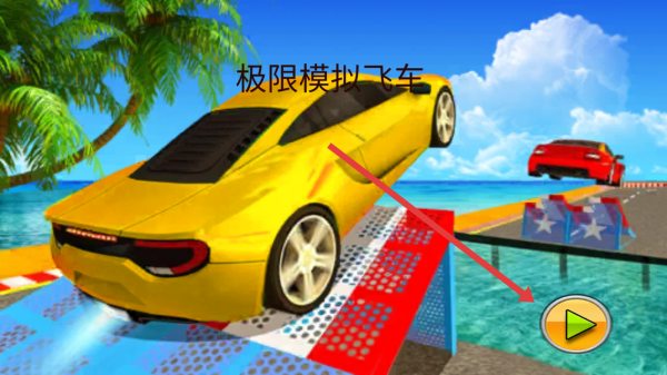 1、點擊首屏播放按鈕,進(jìn)入【極限模擬飛車】,開啟賽車特技挑戰(zhàn),體驗水上賽道飛躍。