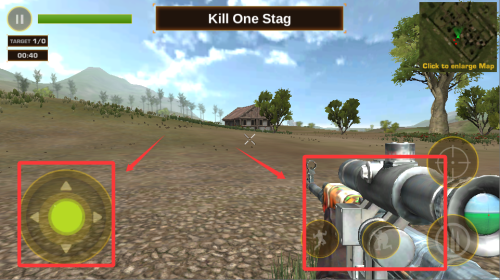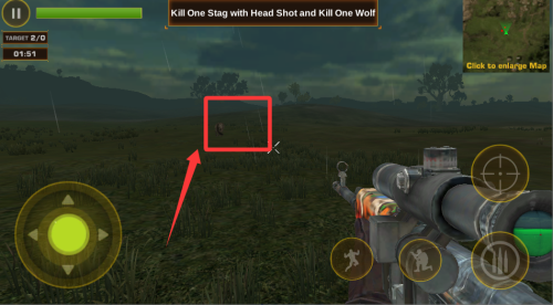 1、進(jìn)入游戲,先熟悉操作,左邊控制移動(dòng),右邊射擊和瞄準(zhǔn)。
