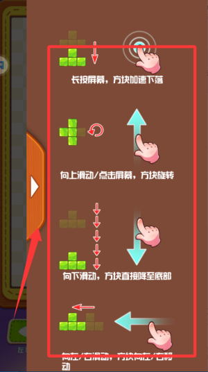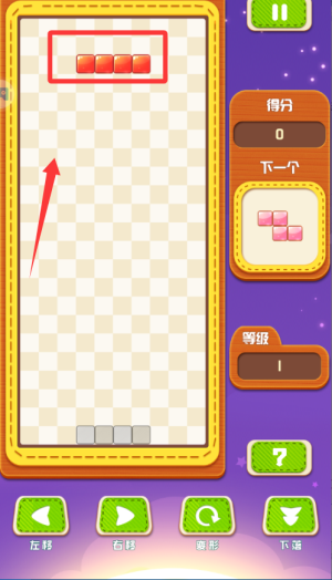 1、啟動(dòng)游戲后先適應(yīng)控制方式,通過(guò)滑動(dòng)屏幕來(lái)旋轉(zhuǎn)和移動(dòng)方塊,盡量填滿(mǎn)每一行避免空洞出現(xiàn)。