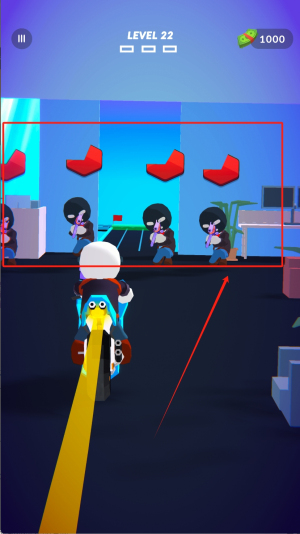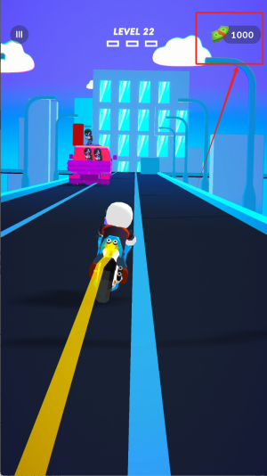 1、在"LEVEL 22"關(guān)卡中,操控摩托車沿道路行駛,注意收集紅框標(biāo)注的"1000"分道具,同時避開障礙物保持行駛穩(wěn)定性。