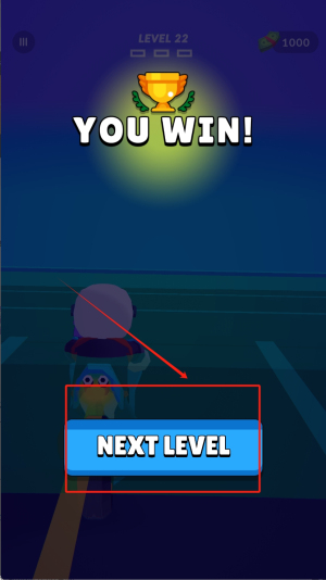 3、接近終點時鎖定紅框"NEXT LEVEL"按鈕,在顯示"YOU WIN!"后立即點擊進(jìn)入下一關(guān),注意查看當(dāng)前關(guān)卡得分和剩余道具數(shù)量。