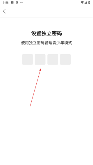 4、在設(shè)置獨(dú)立密碼頁(yè)面設(shè)置密碼,即可完成青少年模式的開(kāi)啟操作。