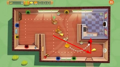 2、游戲中途遇到貓咪時(shí),觀察其虛線行動(dòng)路線,跟在貓咪后面或等其轉(zhuǎn)向后,快速規(guī)劃路線吃到奶酪并跑向出口。