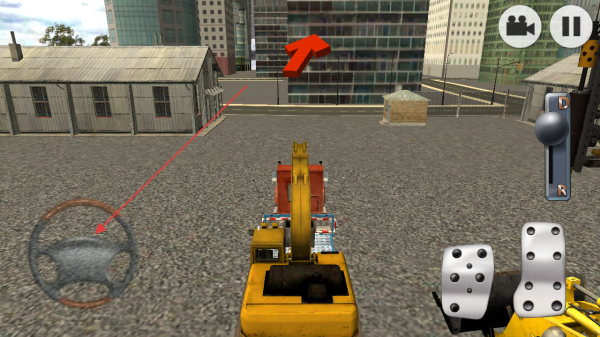2、在工地場(chǎng)景,通過(guò)操控方向盤、按鈕等,駕駛挖掘機(jī)移動(dòng),按箭頭指引完成施工任務(wù)。
