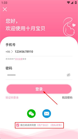 4、勾選我已閱讀并同意相關(guān)協(xié)議的選項(xiàng),點(diǎn)擊粉色的登錄按鈕,完成賬號(hào)登錄流程。