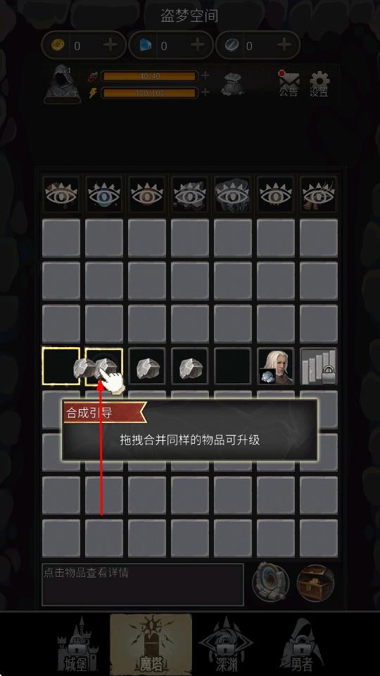 1、在背包界面,拖拽合并相同物品,觸發(fā)合成升級(jí),提升道具屬性、功能,助力冒險(xiǎn)進(jìn)程。