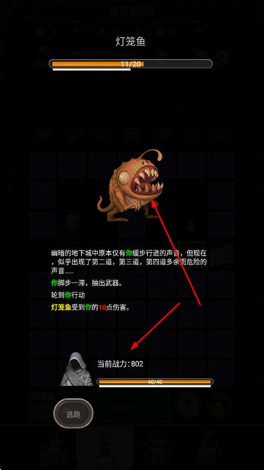 3、遭遇怪物時(shí),依據(jù)戰(zhàn)力、怪物屬性,選擇戰(zhàn)斗或逃跑,戰(zhàn)斗中計(jì)算傷害、策略應(yīng)對(duì),存活則獲取獎(jiǎng)勵(lì)。