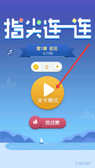 1、點擊【關卡模式】,進入《指尖連一連》第1章“初見”,開啟第1級1關,開始連線解謎。