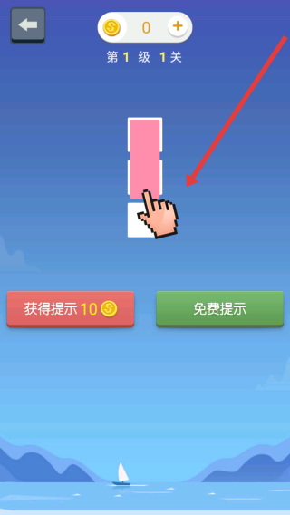 2、關卡中,按提示滑動,連接粉色方塊,完成連線任務,可花金幣/看廣告獲取提示,輔助通關。