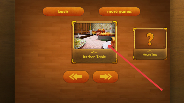 2、在廚房場(chǎng)景,跟隨箭頭,觀察環(huán)境,點(diǎn)擊“Kitchen-Table”進(jìn)入,準(zhǔn)備尋找逃脫線索(如刀具)。