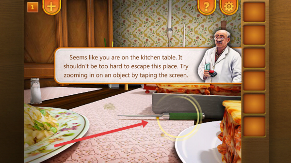 3、按提示“tap-the-screen”,放大物體(如刀具),互動(dòng)收集道具,推進(jìn)逃脫流程,完成關(guān)卡。