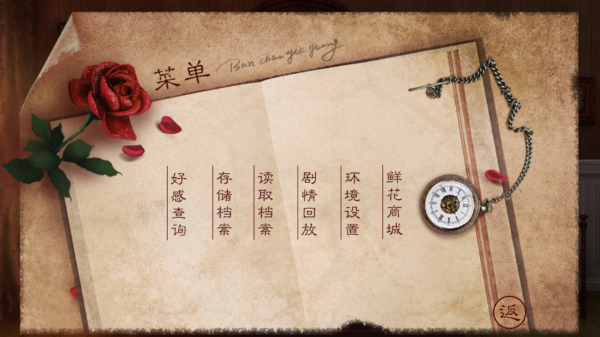 3、用【存儲檔案】【讀取檔案】管理進度,【劇情回放】重溫情節(jié),【環(huán)境設(shè)置】調(diào)參數(shù);借【好感查詢】了解角色關(guān)系,【鮮花商城】購買道具,優(yōu)化游戲體驗。