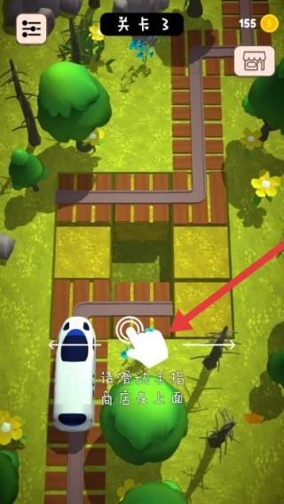 2、遇“滑動的手指”提示,長按拖移汽車,調(diào)整路徑,避陷阱(缺口),保行駛。