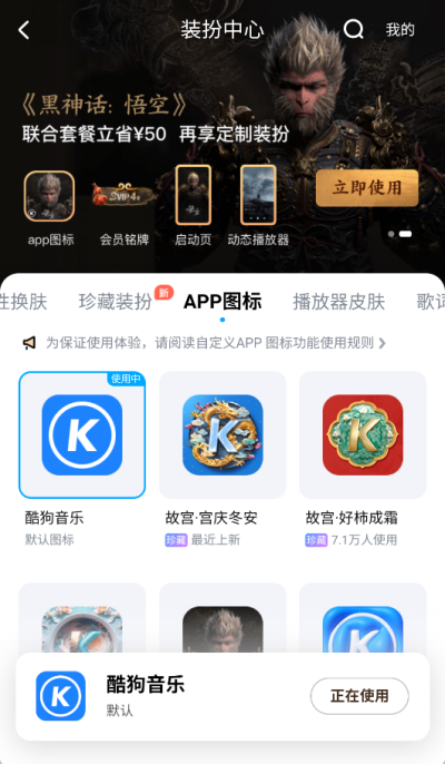 4、點(diǎn)擊后即可進(jìn)入APP圖標(biāo)裝扮中心界面,在這里可以選擇自己喜歡的APP圖標(biāo)進(jìn)行替換使用。