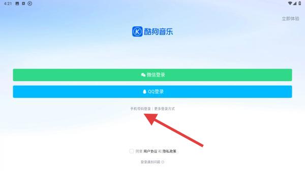 1、打開酷狗音樂APP,若未登錄,會直接跳轉(zhuǎn)至登錄頁面或在APP內(nèi)點(diǎn)擊我的觸發(fā)登錄流程。