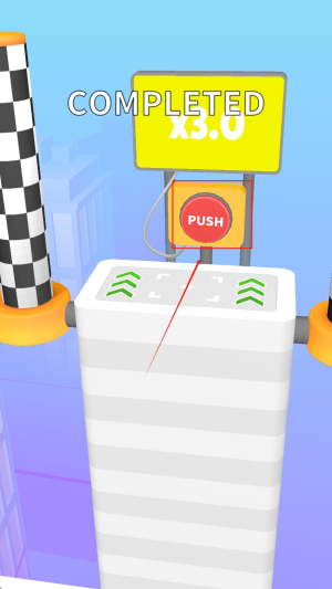 2、完成關(guān)卡后查看COMPLETED界面顯示的X3.0倍率,點(diǎn)擊紅色PUSH按鈕確認(rèn)獎勵,根據(jù)綠色箭頭指引進(jìn)入下一階段。