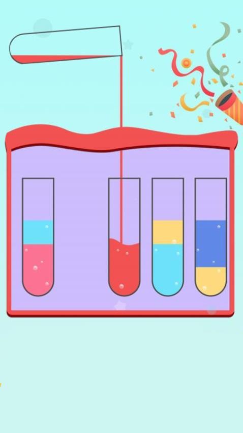 1、游戲開始后,需要通過拖拽操作,將不同試管中的同色液體進(jìn)行合并歸類。