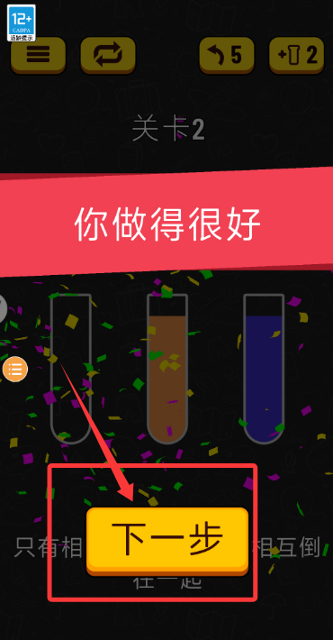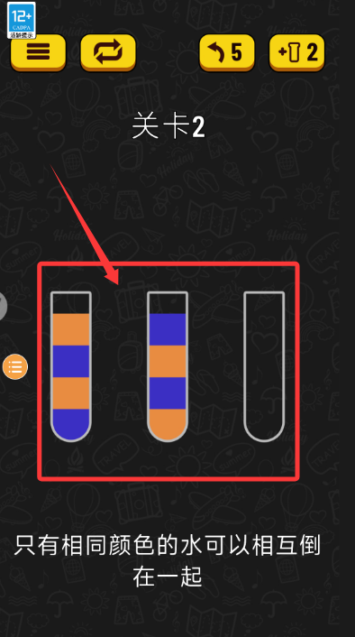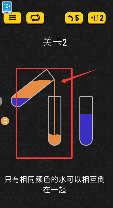 2、注意只有顏色完全一致的水才能相互轉(zhuǎn)移,操作時(shí)需謹(jǐn)慎選擇倒入順序。