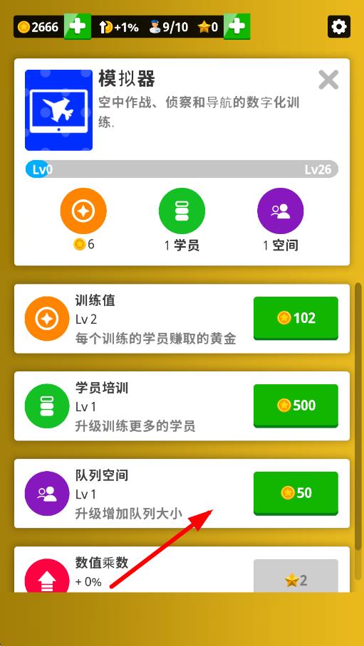 2、放置升級飛機模型與基地設(shè)施,完成任務(wù)獲取獎勵,利用掛機領(lǐng)取的金幣提升基地能力。
