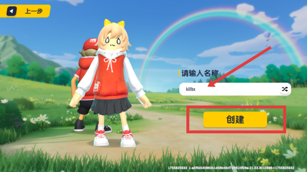 3、在名稱輸入框填寫(xiě)設(shè)定的角色名,確認(rèn)無(wú)誤后,點(diǎn)擊黃色創(chuàng)建按鈕,完成香腸派對(duì)角色創(chuàng)建。