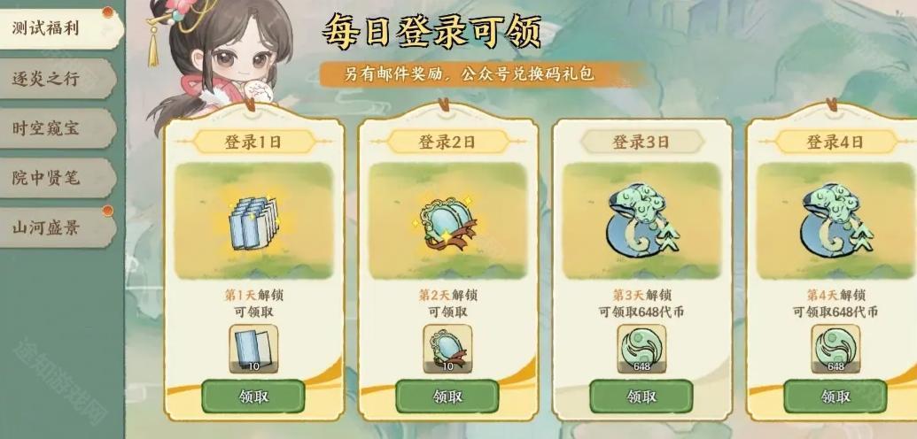 1、每日登錄獎(jiǎng)勵(lì):測(cè)試期間每日登錄,活動(dòng)界面領(lǐng)拜帖、窺寶鏡、繪玉等,助力抽取名士、文物,提升養(yǎng)成進(jìn)度。