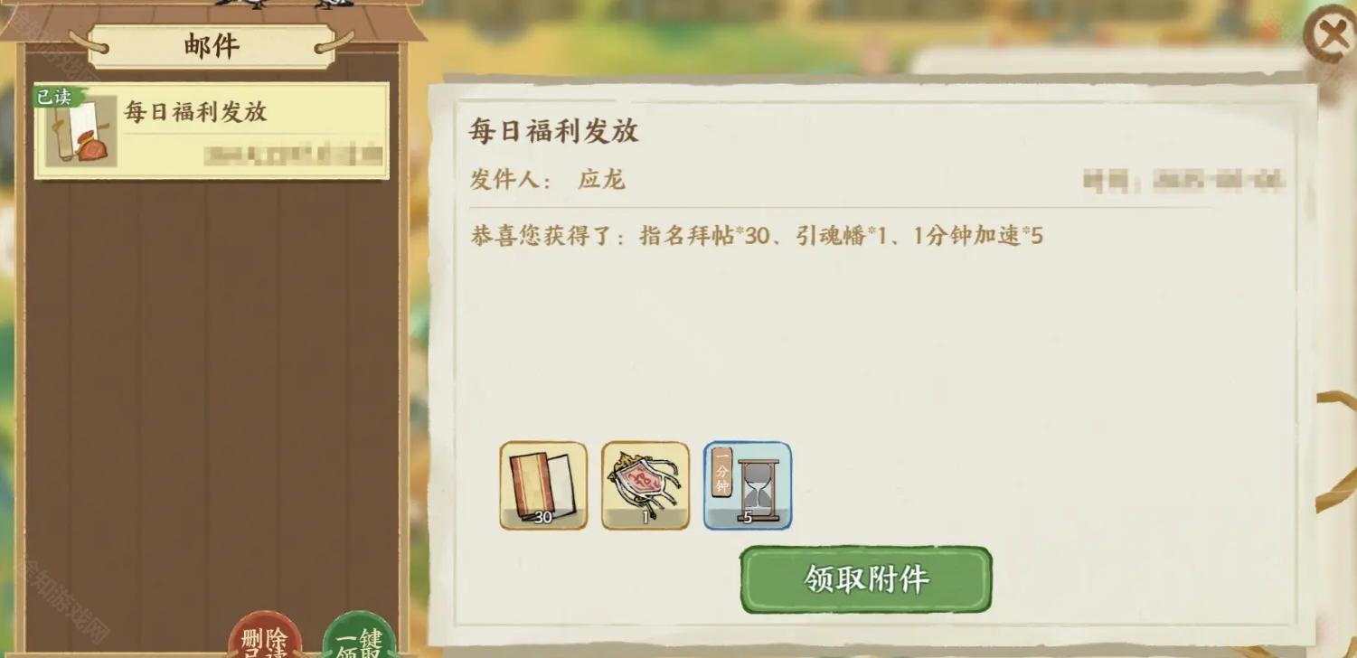 3、福利3為每日登錄可領(lǐng)郵箱獎(jiǎng)勵(lì),內(nèi)含繪玉、指名拜帖、加速道具等,官方公眾號(hào)每日10點(diǎn)放出的兌換碼,輸入后可領(lǐng)地級(jí)名士自選寶箱、拜帖、加速道具等豐厚獎(jiǎng)勵(lì)。