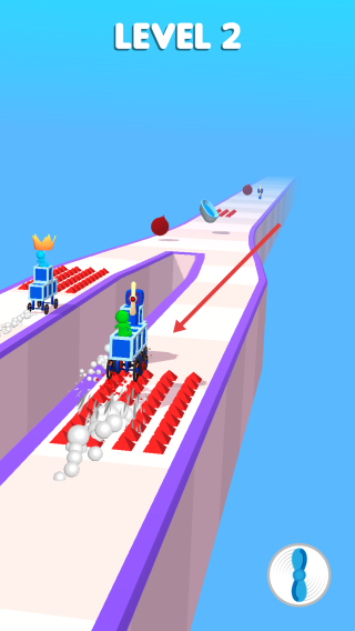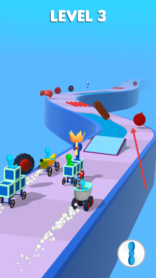2、LEVEL2操控藍(lán)綠賽車,沿紫色賽道行駛,避紅色尖刺、滾球,超藍(lán)色對(duì)手。