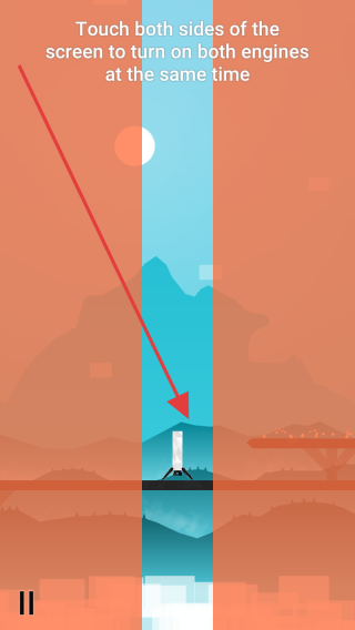 2、根據(jù)提示【Touch both sides】,同時觸摸屏幕兩側(cè),啟動火箭引擎,控制起飛方向。