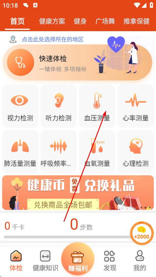 1、打開體檢寶應(yīng)用,在首頁點(diǎn)擊血壓測量選項(xiàng)。
