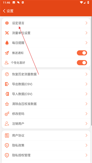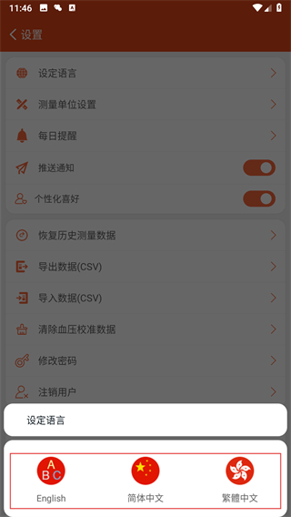 3、點(diǎn)擊設(shè)定語言選項(xiàng),彈出語言選擇框。