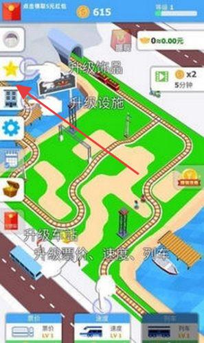 1、進(jìn)入游戲界面,點(diǎn)擊左側(cè)功能按鈕(如星星標(biāo)識),查看可升級的飾品等內(nèi)容,提升車站外觀。