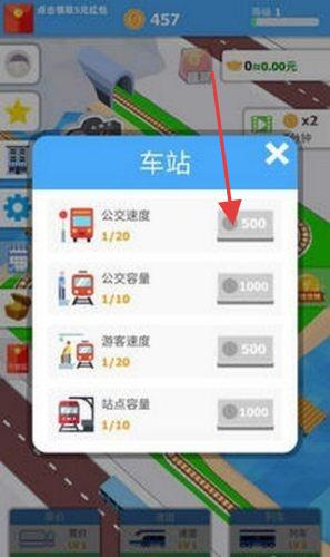 3、進(jìn)入“車站”界面,針對公交速度、容量等屬性,消耗對應(yīng)金幣升級,增強(qiáng)車站整體運(yùn)力。