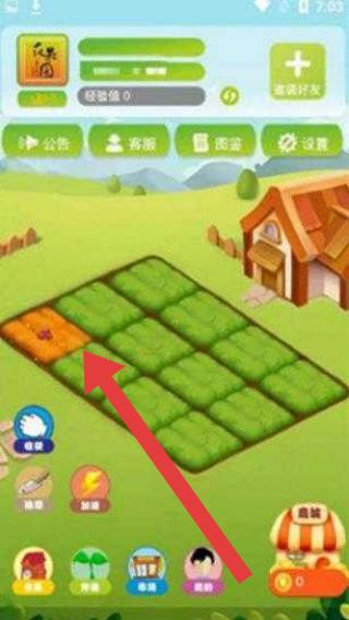 1、點擊農(nóng)田中箭頭指向的土地,進入種植流程,可從倉庫選種子(若有),播種作物。