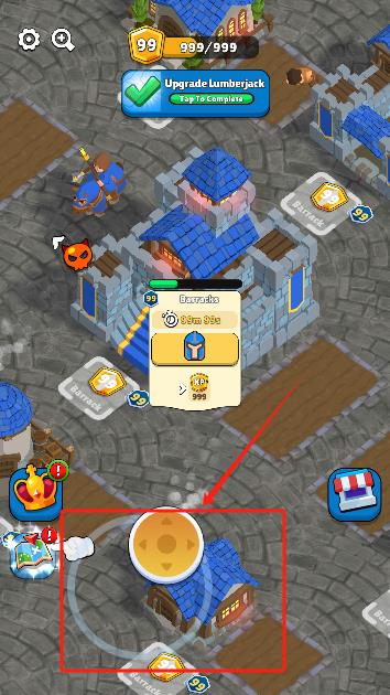 1、下載打開游戲后點(diǎn)擊“開始游戲”,通過搖桿控制角色移動(dòng),跟隨頂部任務(wù)指引開啟王國(guó)建設(shè)。