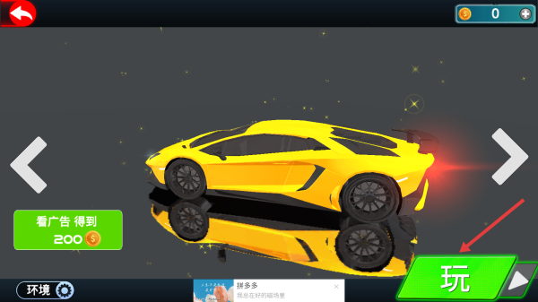 1、選黃色跑車,點(diǎn)【玩】,消耗0金幣,進(jìn)入等級(jí)選擇界面。