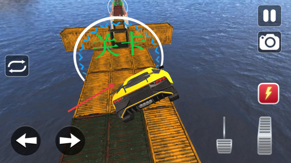 3、駕駛時(shí)控方向(左右鍵)、油門,過水上木板橋,避落水,完成關(guān)卡,賺金幣解鎖新車。