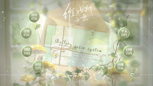 3、用【保存檔案】【讀取檔案】管理進(jìn)度,【劇情回放】重溫情節(jié);借【環(huán)境設(shè)置】調(diào)參數(shù),【個人屬性】【好感查詢】了解狀態(tài),【商城界面】購道具,優(yōu)化游戲體驗。