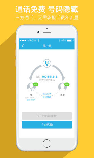 平臺(tái)提供了三方通話功能,醫(yī)生需要進(jìn)行電話問診服務(wù)時(shí),可以由平臺(tái)提供的三方通話平臺(tái),分別撥通醫(yī)生和患者的電話,使醫(yī)生和患者可以進(jìn)行問診,最大程度的保障了醫(yī)生的私密