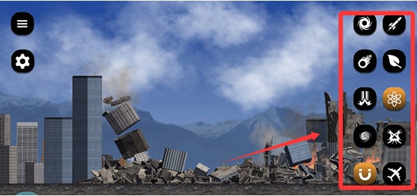 2、你可以使用龍卷風(fēng)、導(dǎo)彈、核武器等來(lái)毀壞建筑。