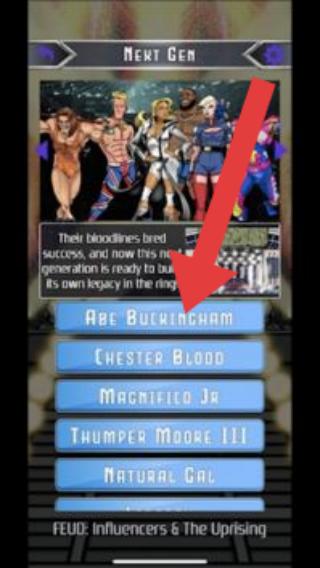 2、在“Next-Gen”選手頁(yè),選擇喜歡的摔跤手(如Ace-Buckingham),組建參賽陣容。