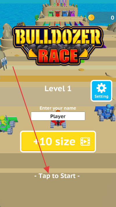 1、點擊界面底部【Tap to Start】文字區(qū)域,啟動《Bulldozer Race》游戲。