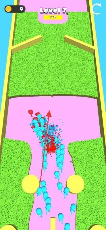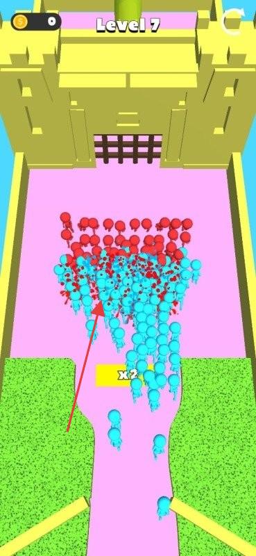 1、在關(guān)卡起始,藍(lán)色人群與紅色人群接觸,通過碰撞合并或淘汰,壯大己方人群規(guī)模。