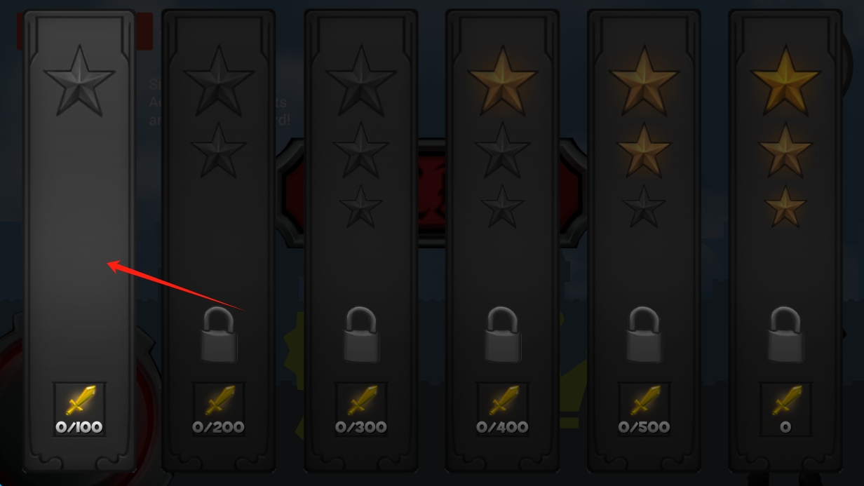 3、撥動(dòng)輪盤移動(dòng),收集特定組合的成就獎(jiǎng)勵(lì)解鎖限定關(guān)卡,如"解鎖所有皮膚類型""累計(jì)擊敗1000個(gè)敵人"。