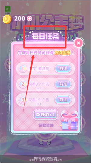 1、基礎(chǔ)玩法,玩家化身夢(mèng)幻國(guó)度公主,通過自由換裝、探索劇情和社交互動(dòng)打造個(gè)性化童話王國(guó),體驗(yàn)多元游戲內(nèi)容。