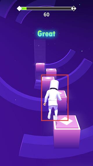 2、操控小人沿方塊路徑奔跑,根據(jù)音樂節(jié)奏點擊屏幕跳躍,精準踩中每個節(jié)奏節(jié)點避免踩空。