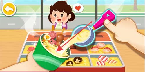 3、進(jìn)入美食制作區(qū),用選好的食材(如蔬菜、肉丸)搭配,制作美食,體驗(yàn)超市購物與烹飪樂趣。