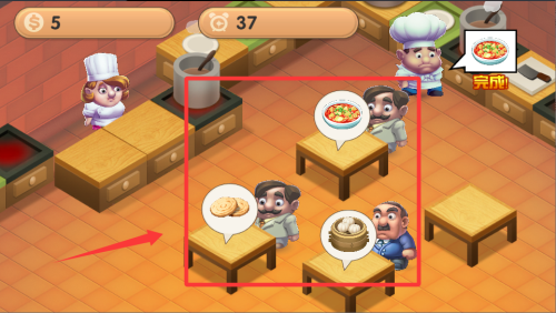1、訂單限時(shí)挑戰(zhàn),顧客需求會(huì)以氣泡形式呈現(xiàn),需在倒計(jì)時(shí)內(nèi)完成對(duì)應(yīng)菜品,逾期將影響小費(fèi)收益。
